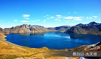 【天池】是中國最大的火山口湖,也是世界海拔最高的火山湖,位於長白山主峰火山錐的頂部,呈橢圓形,是火山噴發後在雨水、雪水和地下泉水的作用下形成的火山口湖。這裡四季風光迷人,是來長白山的必遊之地。登上山頂可見群峰疊嶂、氣勢恢宏,十六座山峰簇擁著一潭平靜的湖水,在藍天晴空的映照下,湖水深邃幽藍,格外迷人。