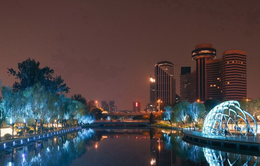 【北京藍色港灣風情水岸商業街】 由美國JERDE國際建築師事務所設計,是國內首個Lifestyle Shopping Park 。建築融合歐式小鎮風格與玻璃拱頂設計,劃分SOLANA商業街、兒童城、亮馬食街等區域, 商區涵蓋1000餘個品牌與600多家店鋪,包含購物、餐飲、娛樂等多元業態,配備真冰滑冰場、美術館及音樂噴泉設施。